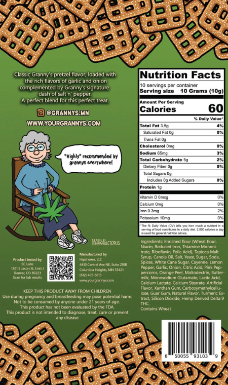 Classic Granny’s pretzel flavor, loaded with the rich flavors of garlic and onion, complemented by Granny’s signature dash of salt n’ pepper. A perfect blend for this perfect treat.